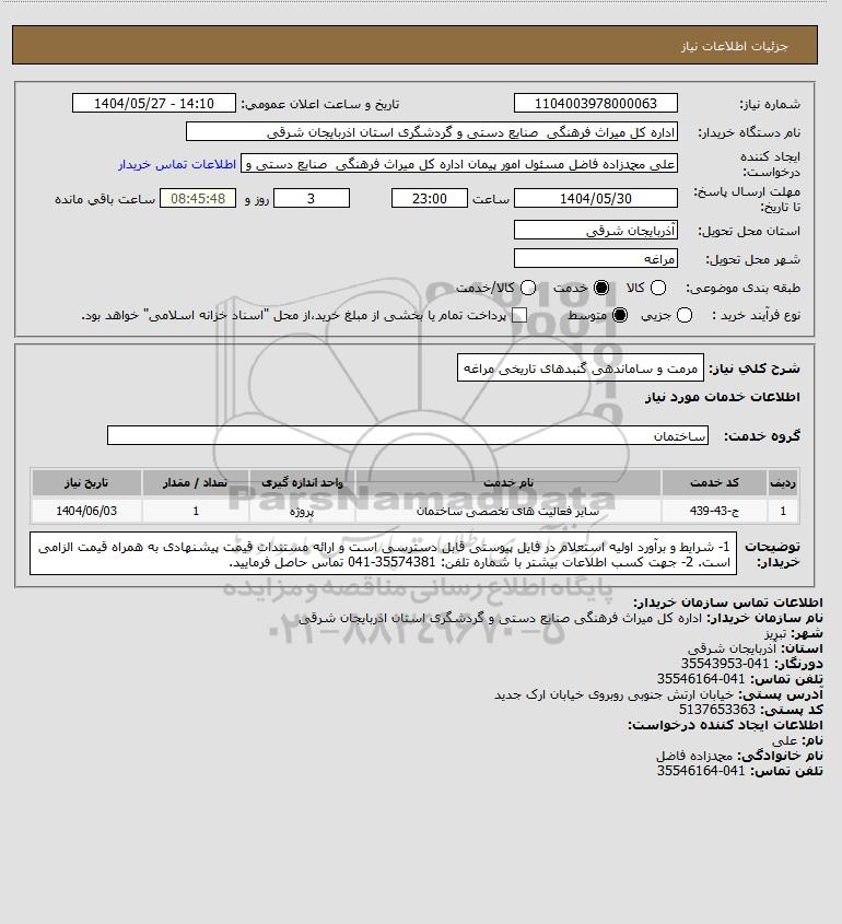 استعلام مرمت و ساماندهی گنبدهای تاریخی مراغه, استعلام مرمت و ساماندهی گنبدهای تاریخی مراغه