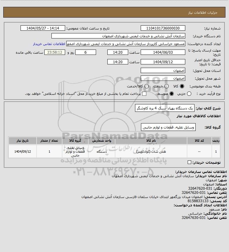 نام دستگاه خریدار:سازمان آتش نشانی و خدمات ایمنی شهرداری اصفهان