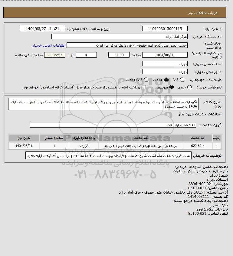 نام دستگاه خریدار:مرکز امار ایران