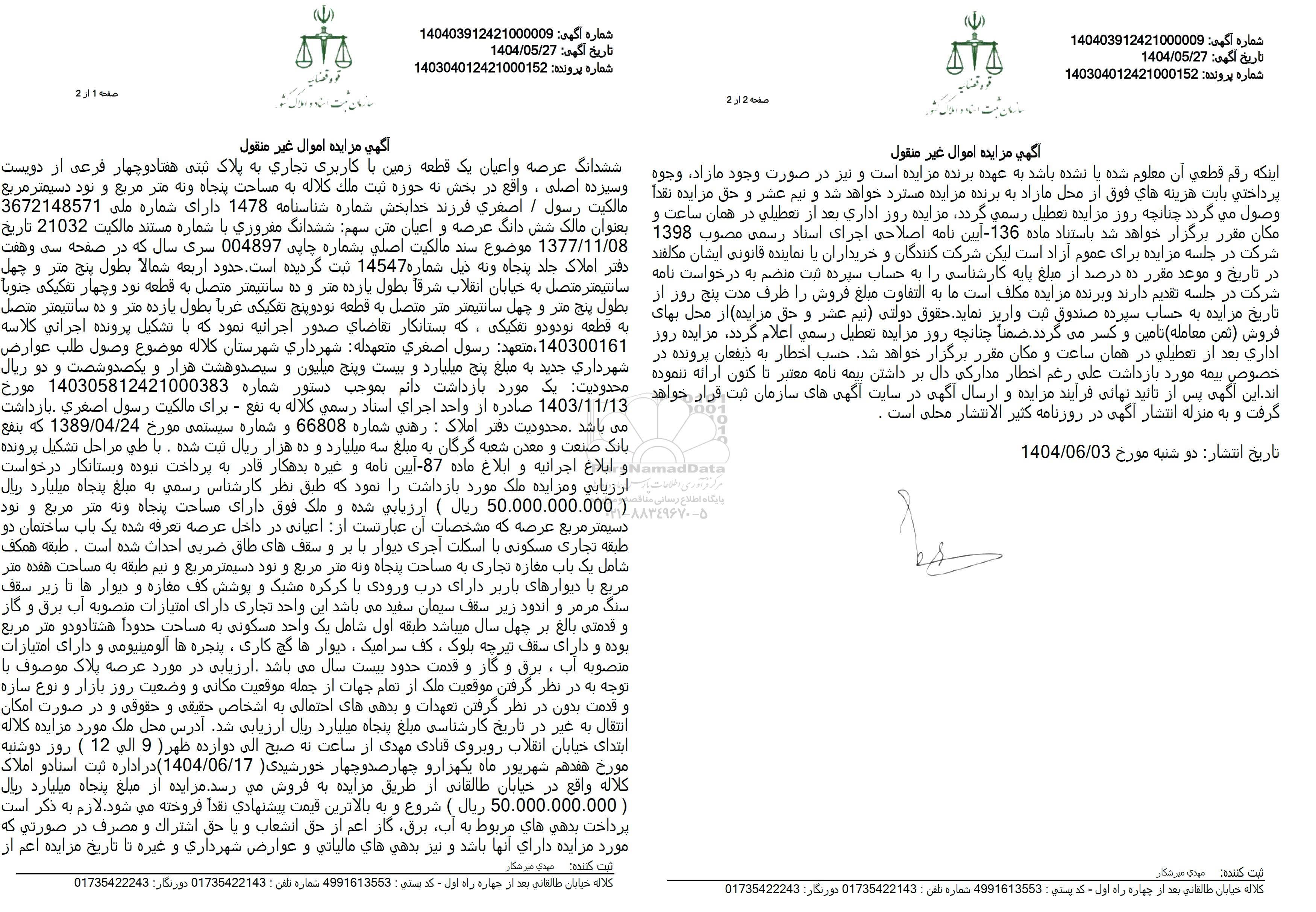 شماره آگهی: 140403912421000009