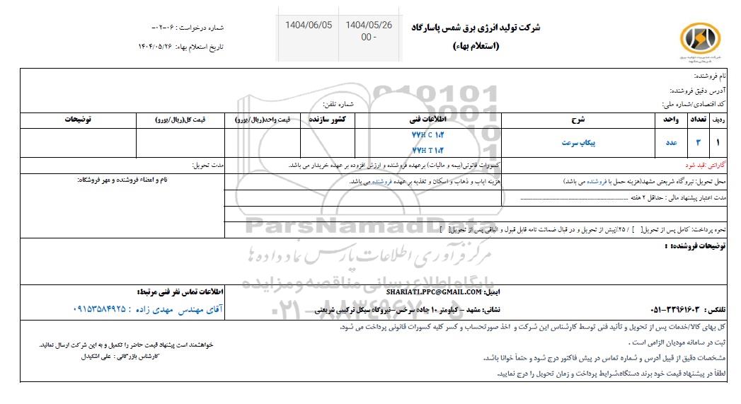 خواهشمند است پیشنهاد قیمت حاضر را تکمیل و به این شرکت ارسال نمایید