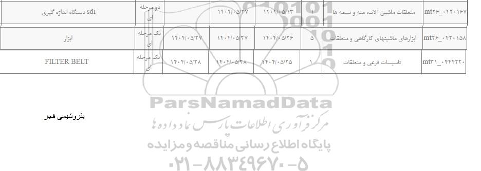 mt31 - 0444220 | تاسیسات فرعی و متعلقات | 1 | 1404.05.28 | 1404.05.28 | تک مر | FILTER BELT |