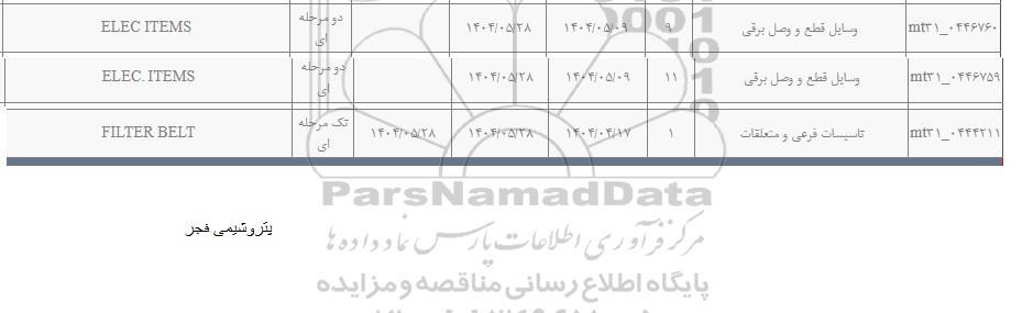 m31-0446759 | وسایل قطع و وصل برقی | 11 | 1404.05.28 | دو مرحله ای | ELEC ITEMS | |