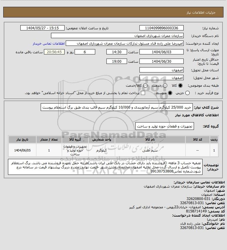 نام دستگاه خریدار:سازمان عمران شهرداری اصفهان