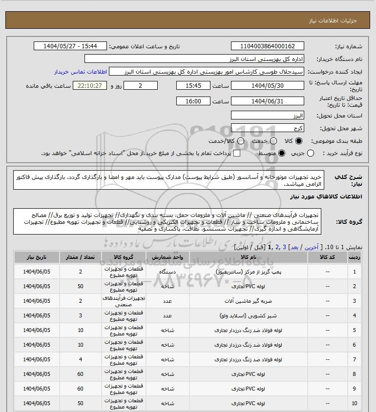 شماره نیاز: 1104003864000162
