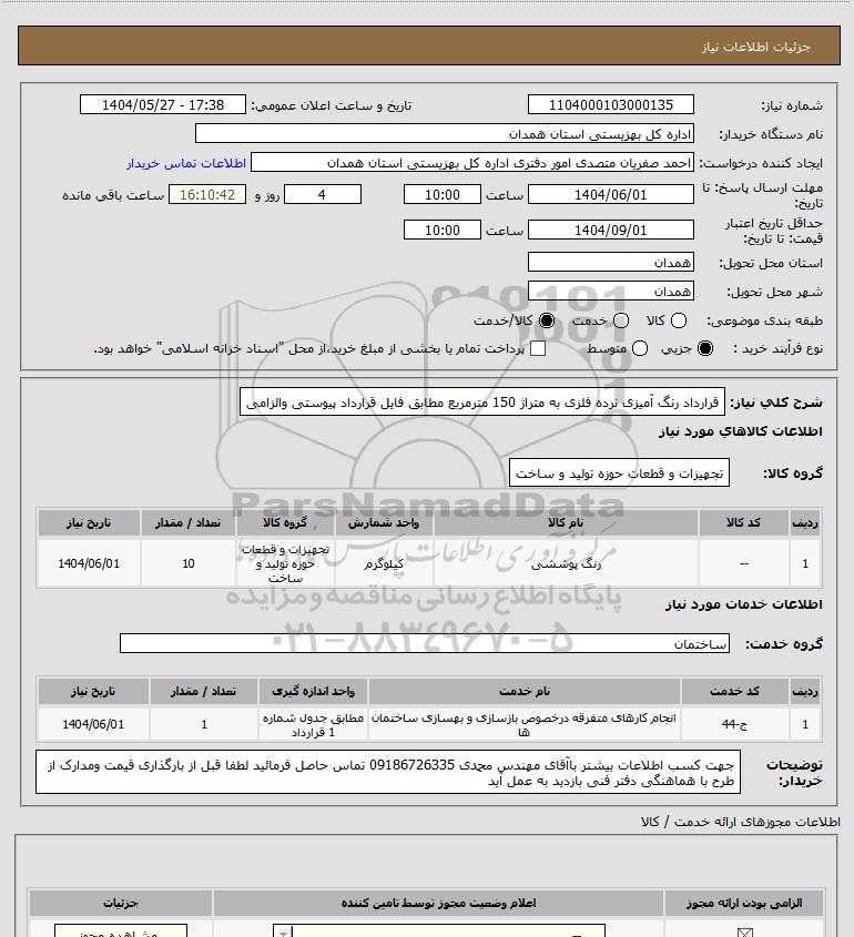 شرح کلی نیاز: قرارداد رنگ آمیزی نرده فلزی به متراژ 150 مترمربع مطابق فایل قرارداد پیوستی والزامی