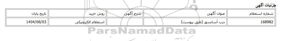 168982درب آسانسور (طبق پیوست)استعلام الکترونیکی1404/06/03