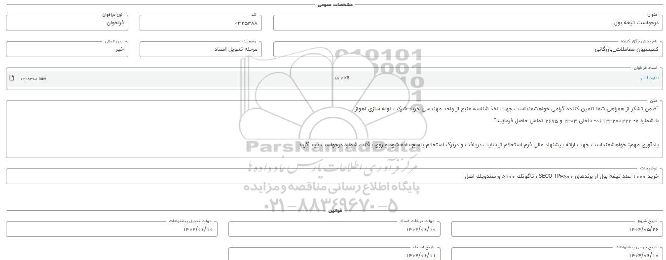 تاریخ بررسی پیشنهادات: 1404.06.10 - تاریخ انقضاء: 1404.06.11