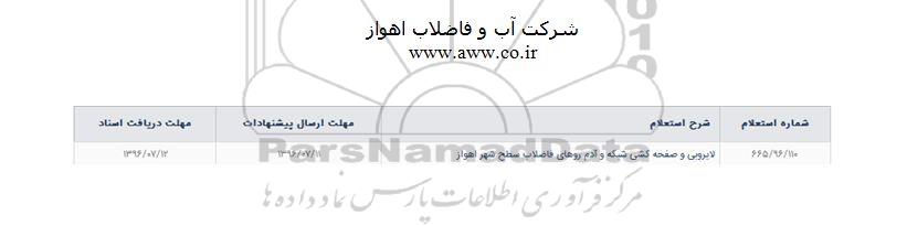 شرح استعلام : لایروبی و صفحه کشی شبکه و آدم روهای فاضلاب سطح شهر اهواز
