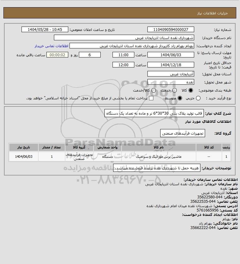نام دستگاه خریدار:شهرداری نقده استان اذربایجان غربی