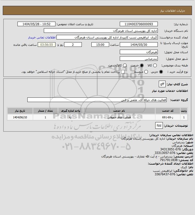 نام دستگاه خریدار:اداره کل بهزیستی استان هرمزگان