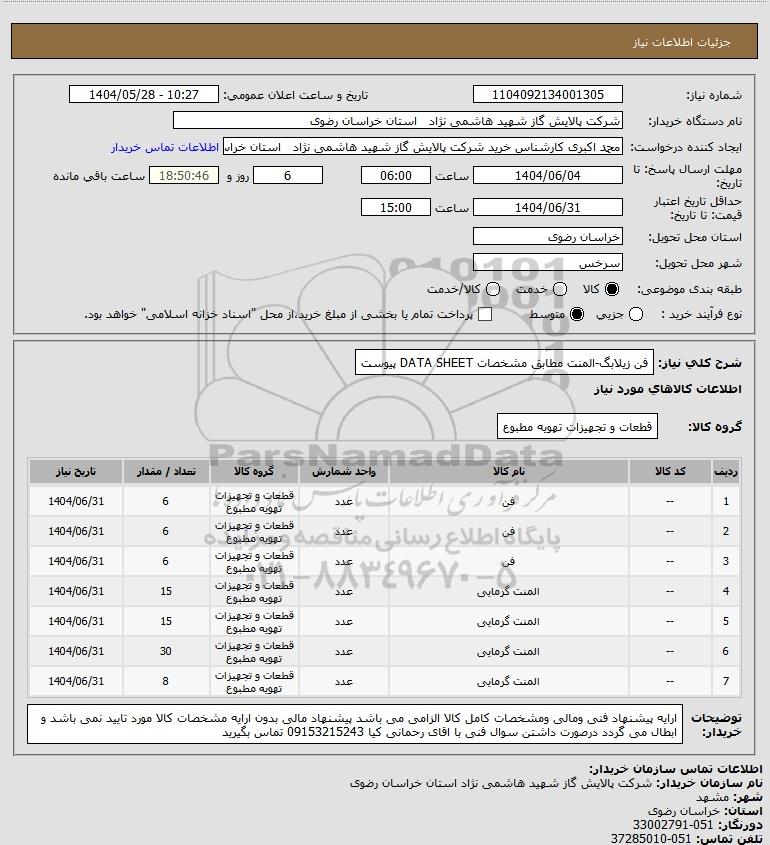 نام دستگاه خریدار:شرکت پالایش گاز شهید هاشمی نژاد استان خراسان رضوی