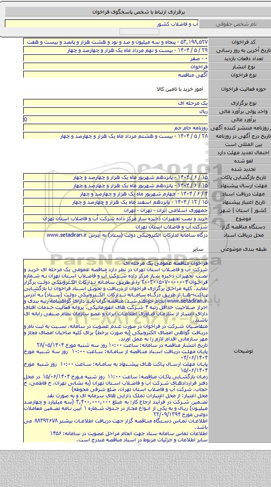 پارس نماد داده ها، خبرگزاری مناقصات و مزایدات کشور