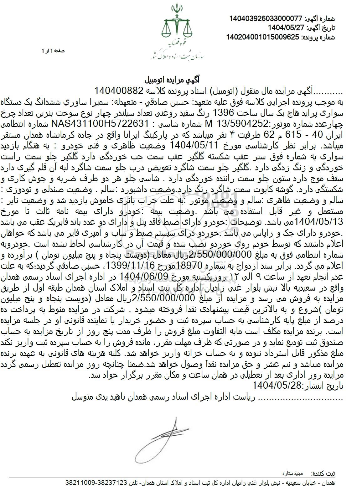 اداره اجرای اسناد رسمی همدان