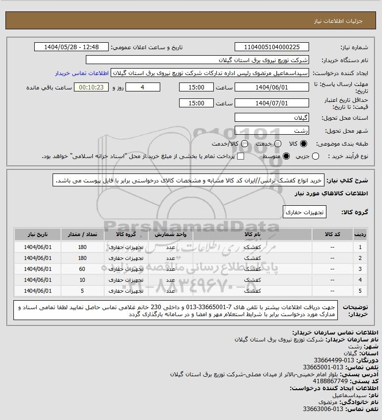 نام سازمان خریدار: شرکت توزیع نیروی برق استان گیلان