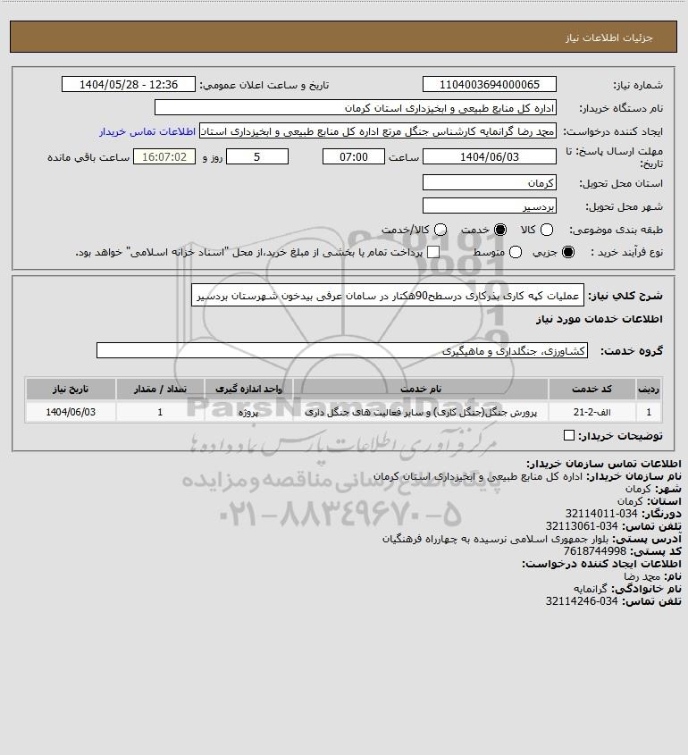 نام دستگاه خریدار:اداره کل منابع طبیعی و ابخیزداری استان کرمان