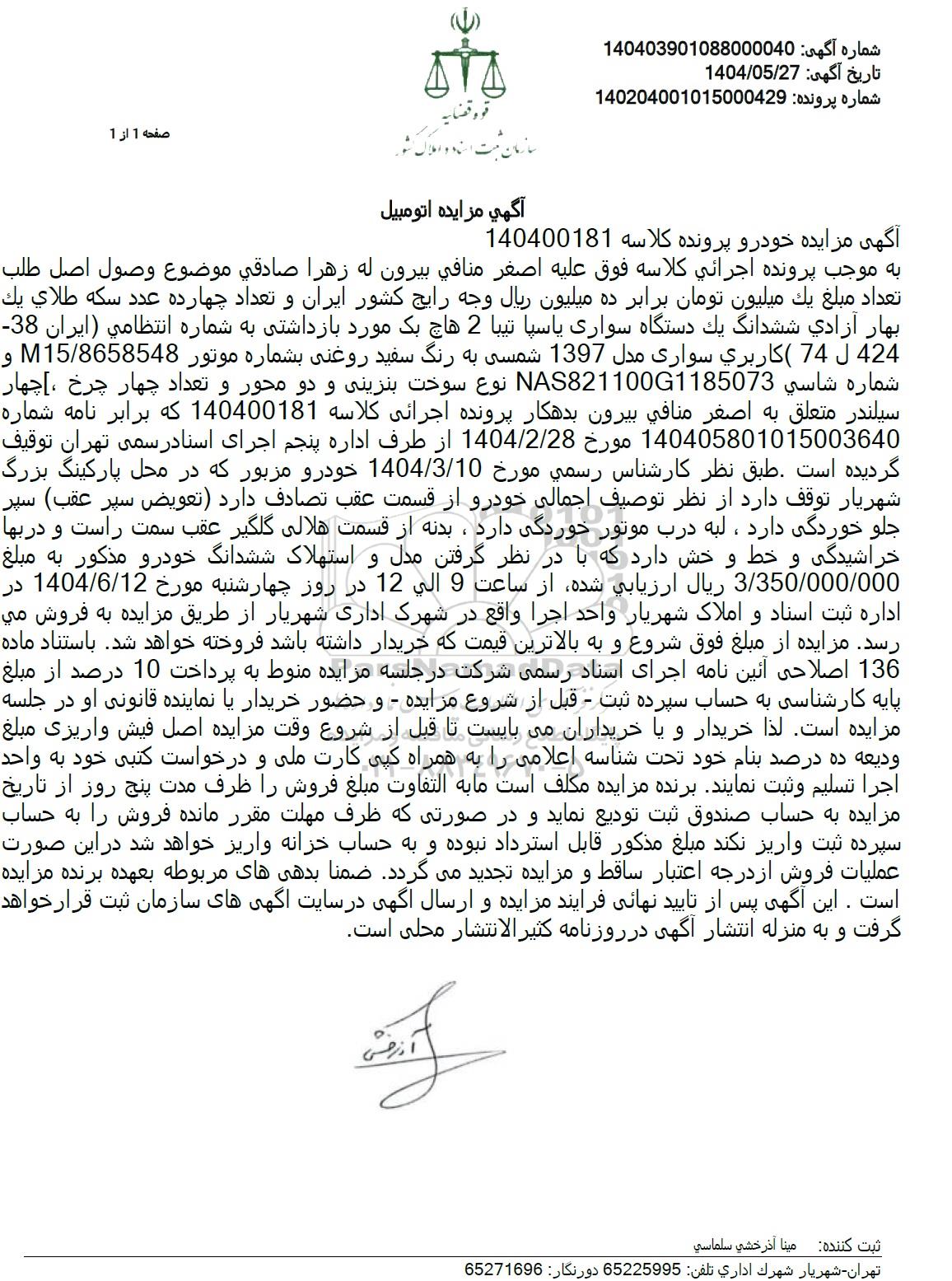 آگهی مزایده اتومبیل