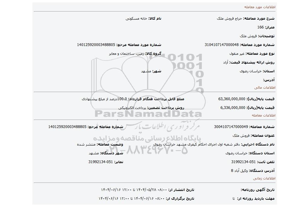 5 مزایده مال غیرمنقول 9653943 1404/07/14 new not special not payed خراسان رضوی