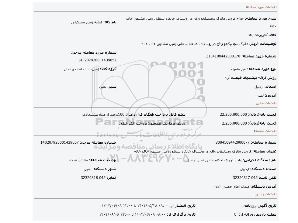 شماره معامله: 3004108442000077 | شماره معامله مرجع: 140207920001439057 | |