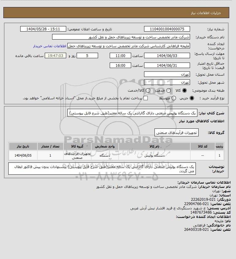 1 -- دستگاه پولیش دستگاه تجهیزات فرآیندهای صنعتی 1 1404/06/05