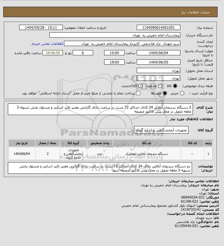 نام دستگاه خریدار:بیمارستان امام خمینی ره تهران