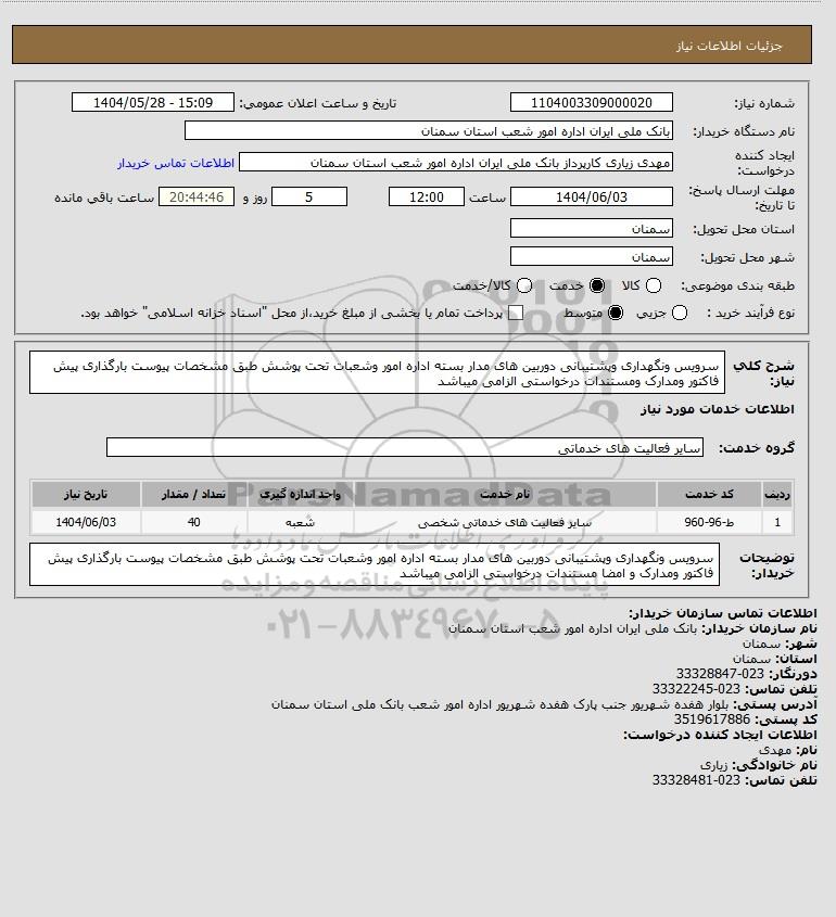 نام دستگاه خریدار:بانک ملی ایران اداره امور شعب استان سمنان
