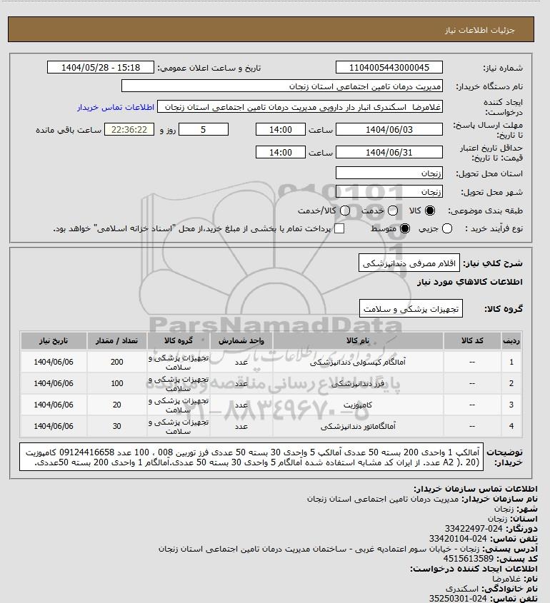 نام سازمان خریدار: مدیریت درمان تامین اجتماعی استان زنجان