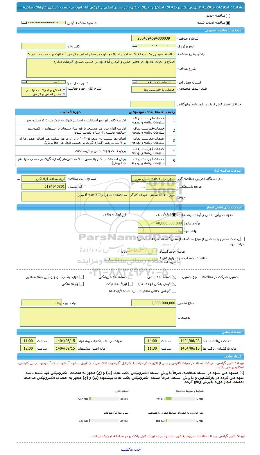| شماره مناقصه | 2004094594000039 | ||||||||||||||||||||
