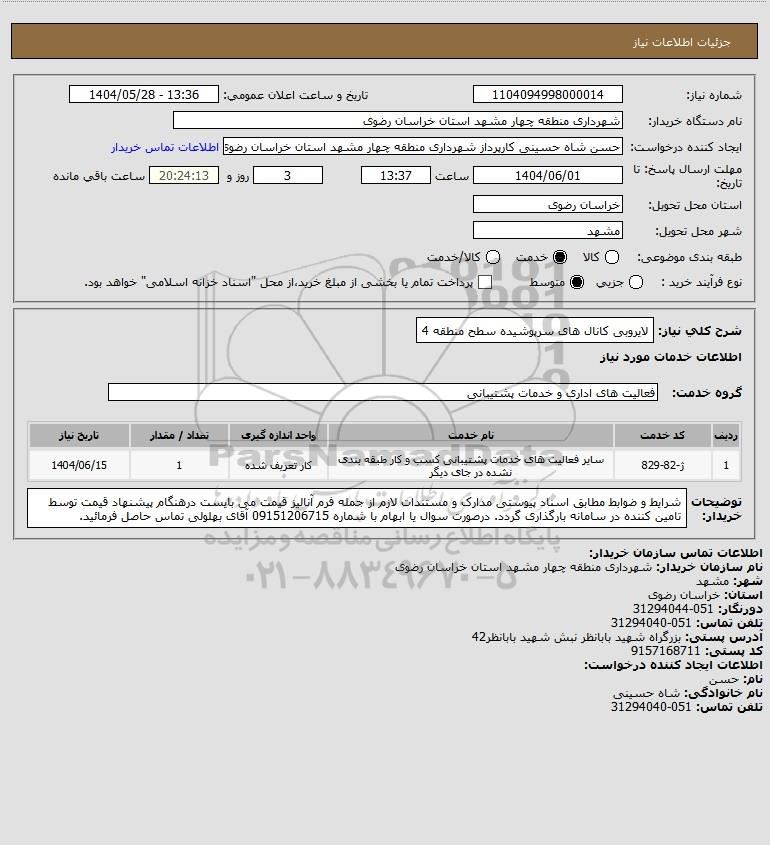 نام سازمان خریدار: شهرداری منطقه چهار مشهد استان خراسان رضوی