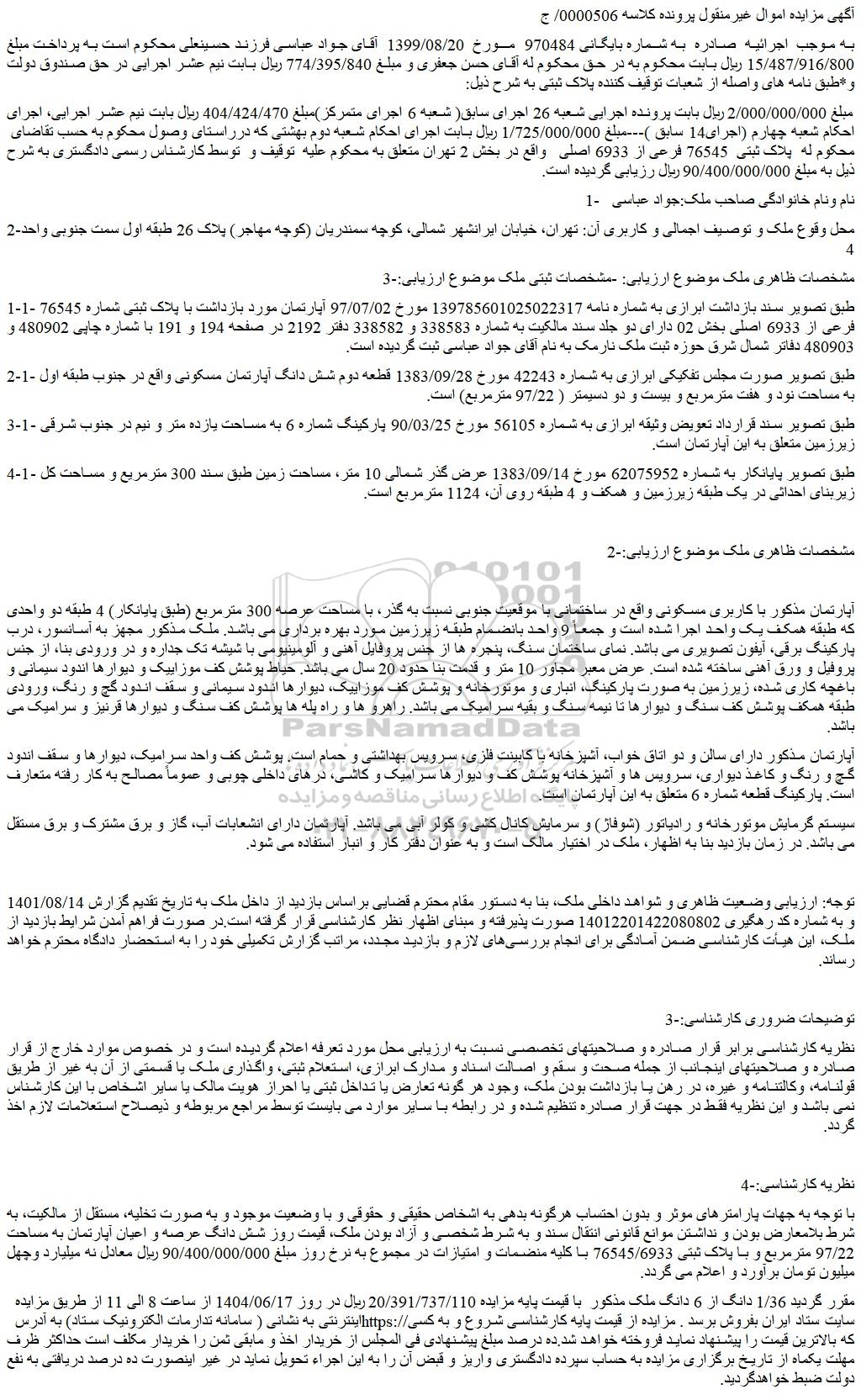 آگهی مزایده اموال غیرمنقول پرونده کلاسه 0000506/ ج