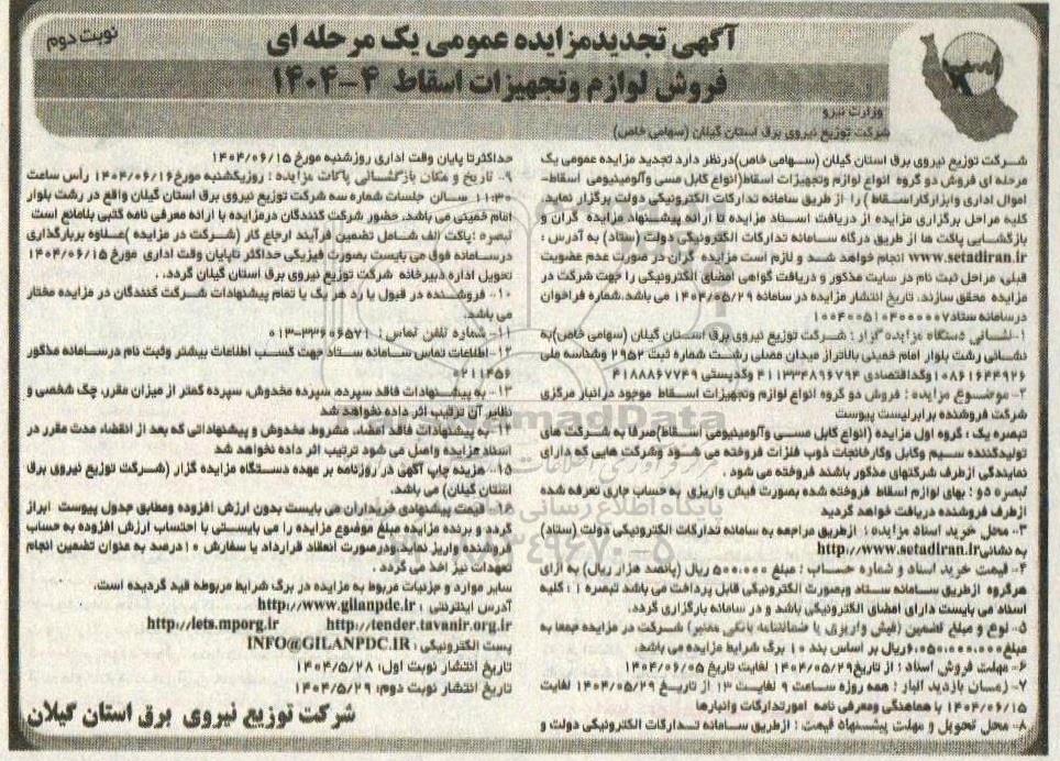 تجدید مزایده فروش لوازم و تجهیزات اسقاط ... نوبت دوم, تجدید مزایده فروش لوازم و تجهیزات اسقاط ... نوبت دوم