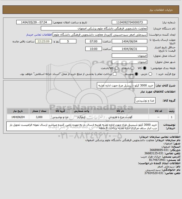 شرح کلی نیاز: خرید 3000 کیلو شینسل مرغ جهت اداره تغذیه