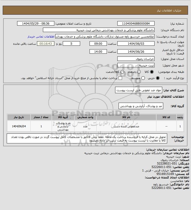 نام دستگاه خریدار:دانشگاه علوم پزشکی و خدمات بهداشتی درمانی تربت حیدریه