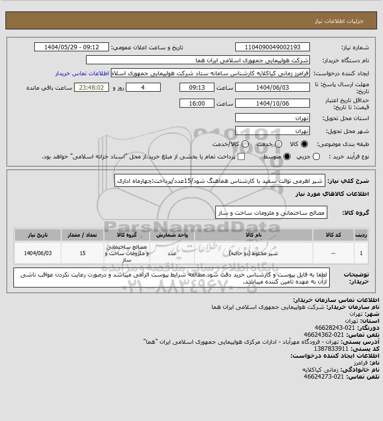 نام دستگاه خریدار:شرکت هواپیمایی جمهوری اسلامی ایران هما