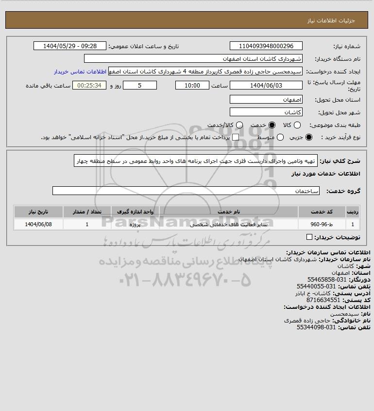 شرح کلی نیاز: تهیه وتامین واجرای داربست فلزی جهت اجرای برنامه های واحد روابط عمومی در سطح منطقه چهار