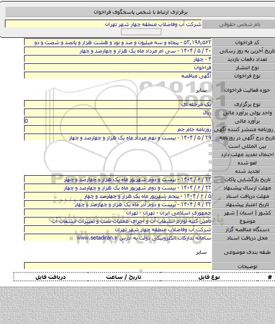 شرکت آب وفاضلاب منطقه چهار شهر تهران