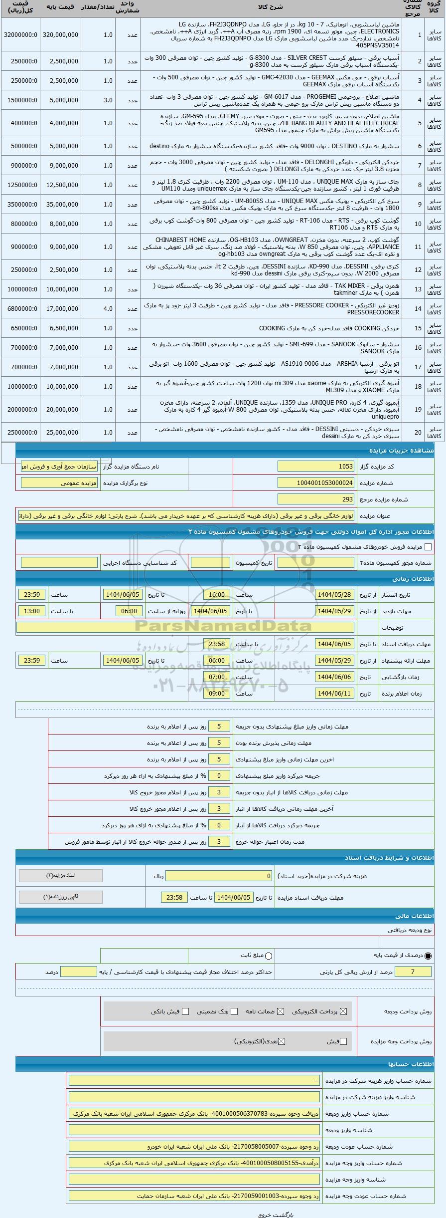 4 مزایده فروش لوازم خانگی 9653544 1404/07/14 new not special not payed گیلان