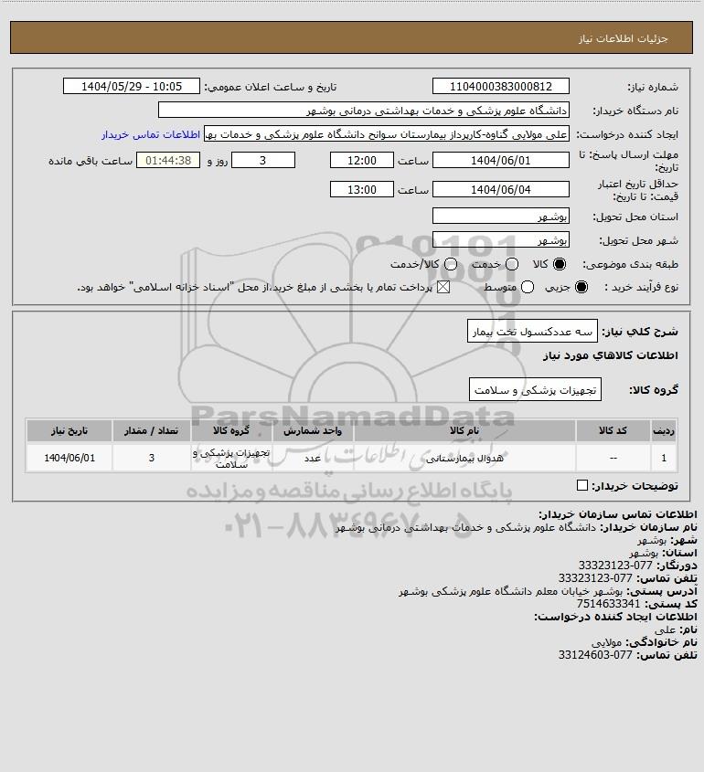 شرح کلی نیاز: سه عددکنسول تخت بیمار