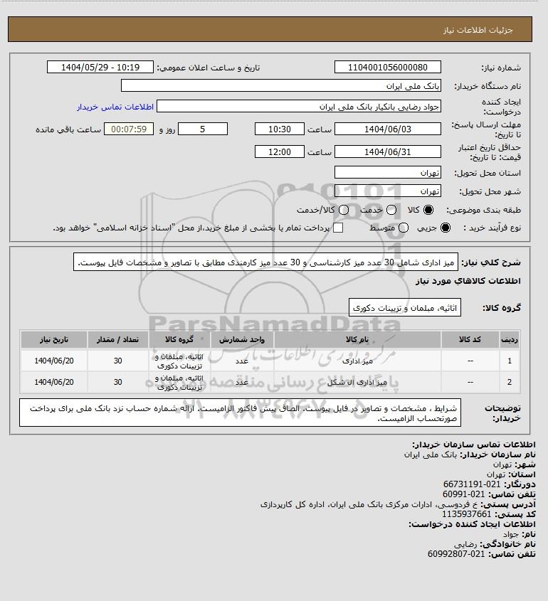 نام دستگاه خریدار:بانک ملی ایران