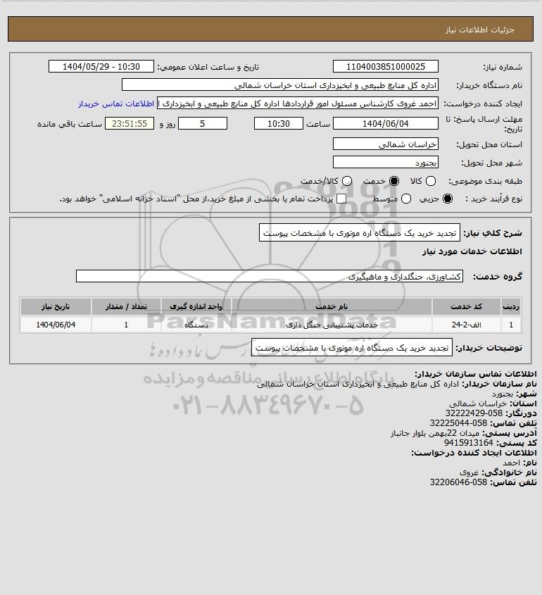 نام دستگاه خریدار:اداره کل منابع طبیعی و ابخیزداری استان خراسان شمالی