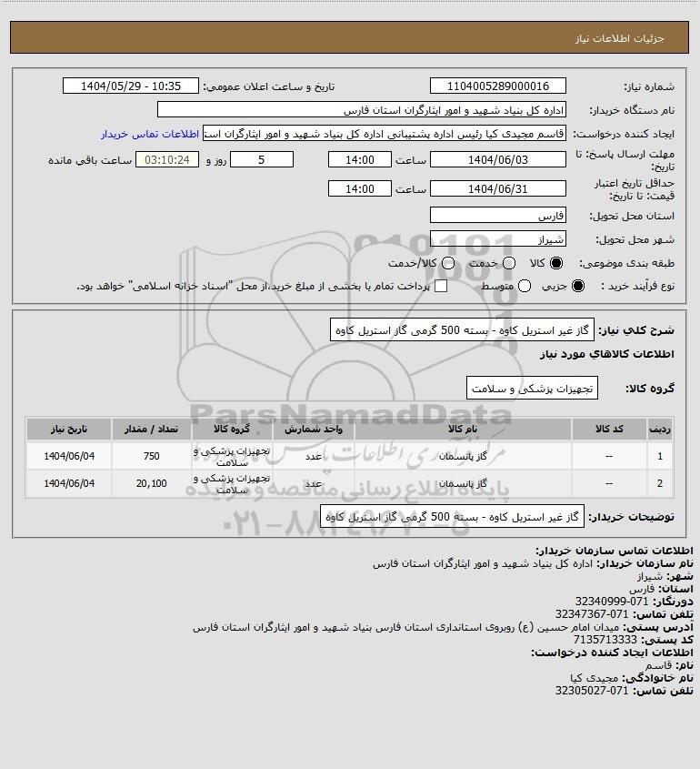 نام دستگاه خریدار:اداره کل بنیاد شهید و امور ایثارگران استان فارس