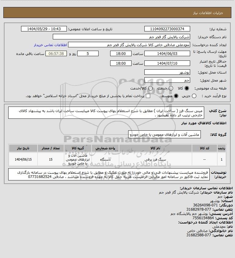 نام دستگاه خریدار:شرکت پالایش گاز فجر جم
