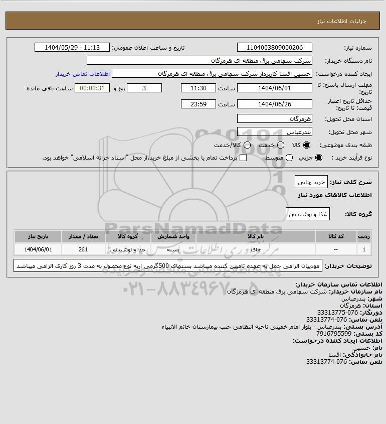 نام دستگاه خریدار:شرکت سهامی برق منطقه ای هرمزگان