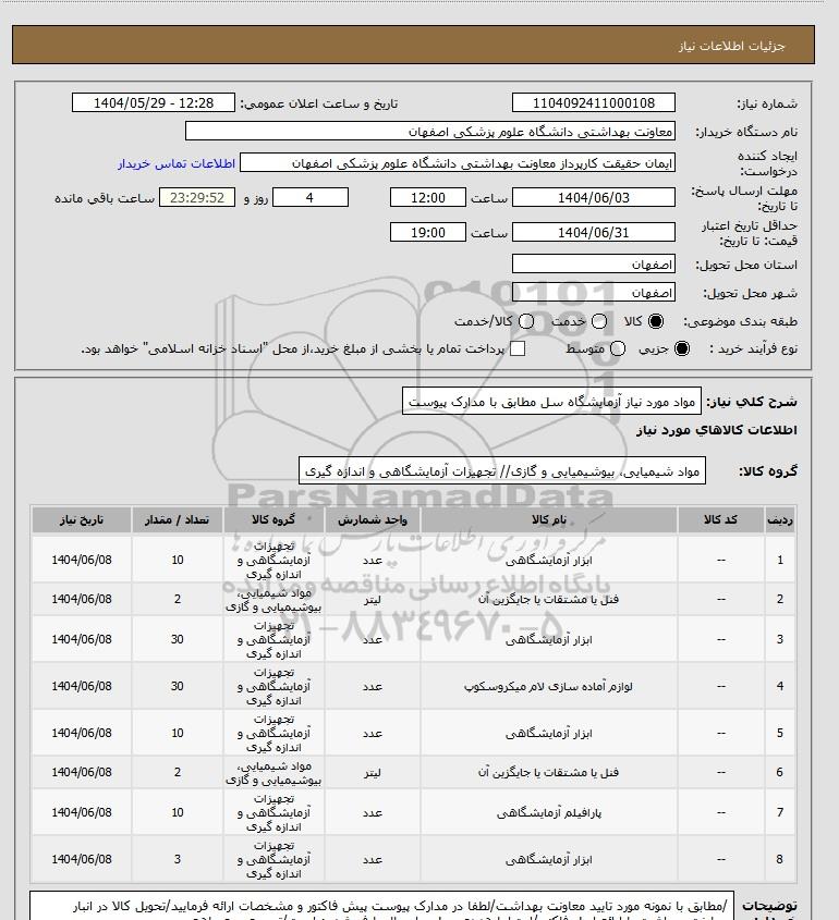 نام دستگاه خریدار:معاونت بهداشتی دانشگاه علوم پزشکی اصفهان
