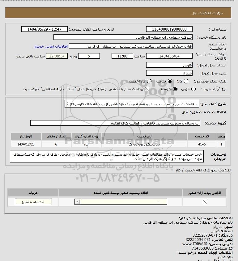 استعلام مطالعات تعیین حریم و حد بستر و نقشه برداری بازه هایی از رودخانه های فارس-فاز 2, استعلام مطالعات تعیین حریم و حد بستر و نقشه برداری بازه هایی از رودخانه های فارس-فاز 2