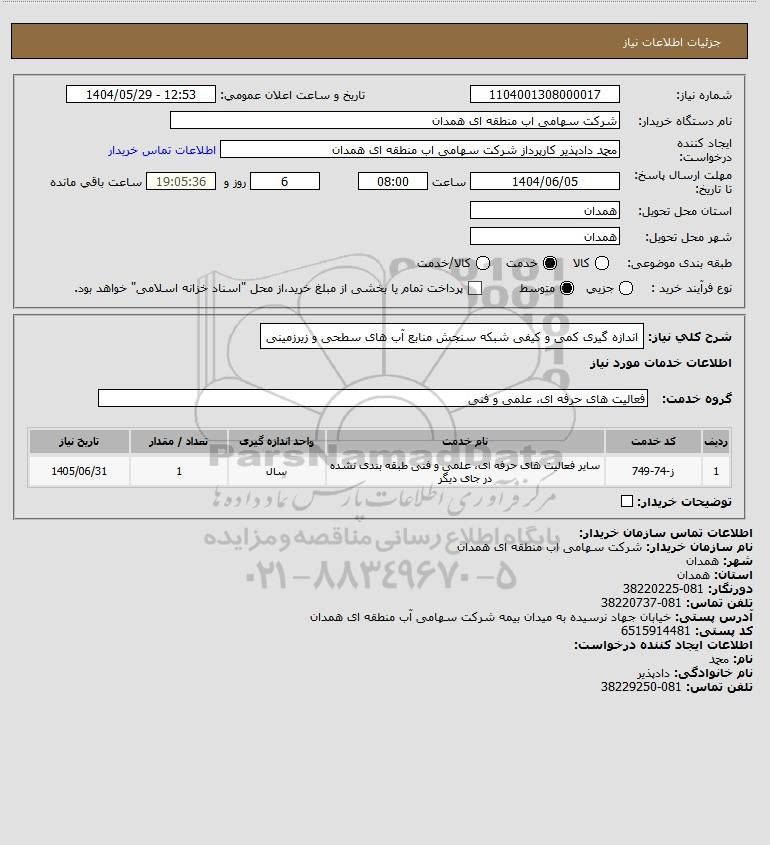 نام دستگاه خریدار:شرکت سهامی اب منطقه ای همدان