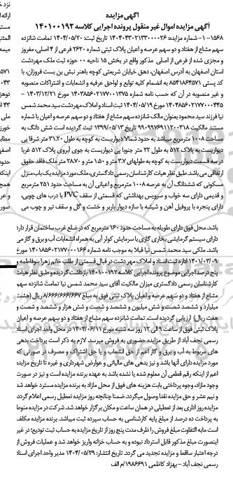 مزایده فروش سهم مشاع از ملک به پلاک ثبتی 512 به مساحت 160 مترمربع, مزایده فروش سهم مشاع از ملک به پلاک ثبتی 512 به مساحت 160 مترمربع