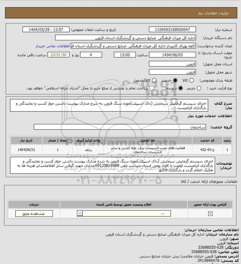 نام دستگاه خریدار:اداره کل میراث فرهنگی صنایع دستی و گردشگری استان قزوین