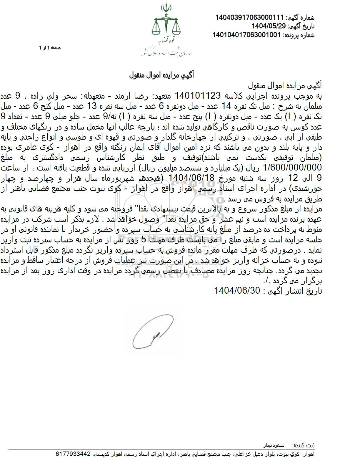 تاریخ مزایده ساعت 9 الی 12 روز سه شنبه مورخ 1404.06.18