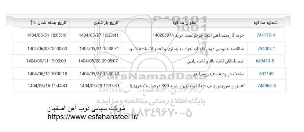 4- 744175 | خرید 3 ردیف آهن آلات - درخواست خرید 140205974 | 1404.05.31 |